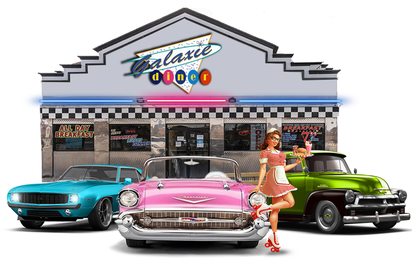 Galaxie Dinners turns back time to the fabulous fifties, featuring all-day breakfast, burgers, hot dinners, rock-and-roll and fun memorabilia.