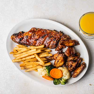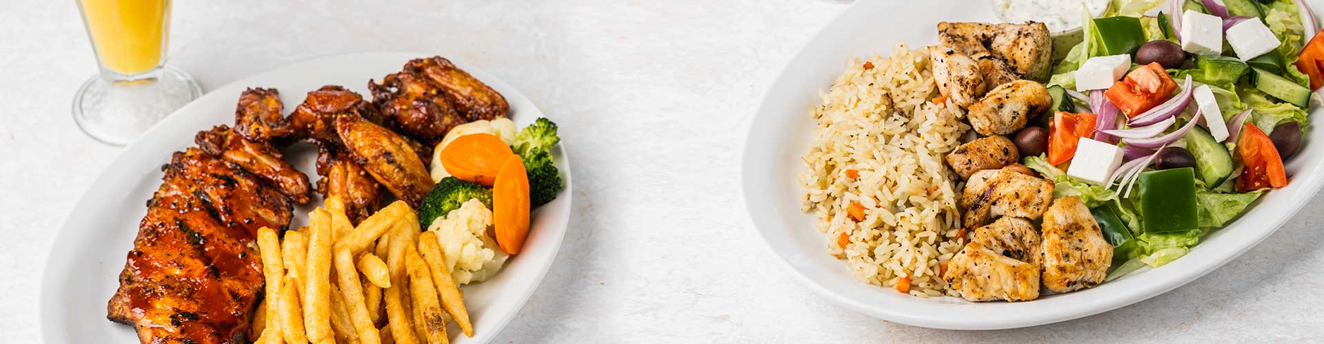 All dinners served with your choice of potatoes or rice plus vegetables. Except for fish & chips.